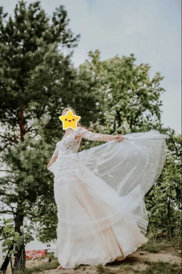 Suknia jest bardzo zwiewna, delikatna,z materiału który "płynie w tańcu".Suknia jest bardzo lekka i wygodna. Przetańczyłam w niej całe wesele i ani razu nie żałowałam wyboru!