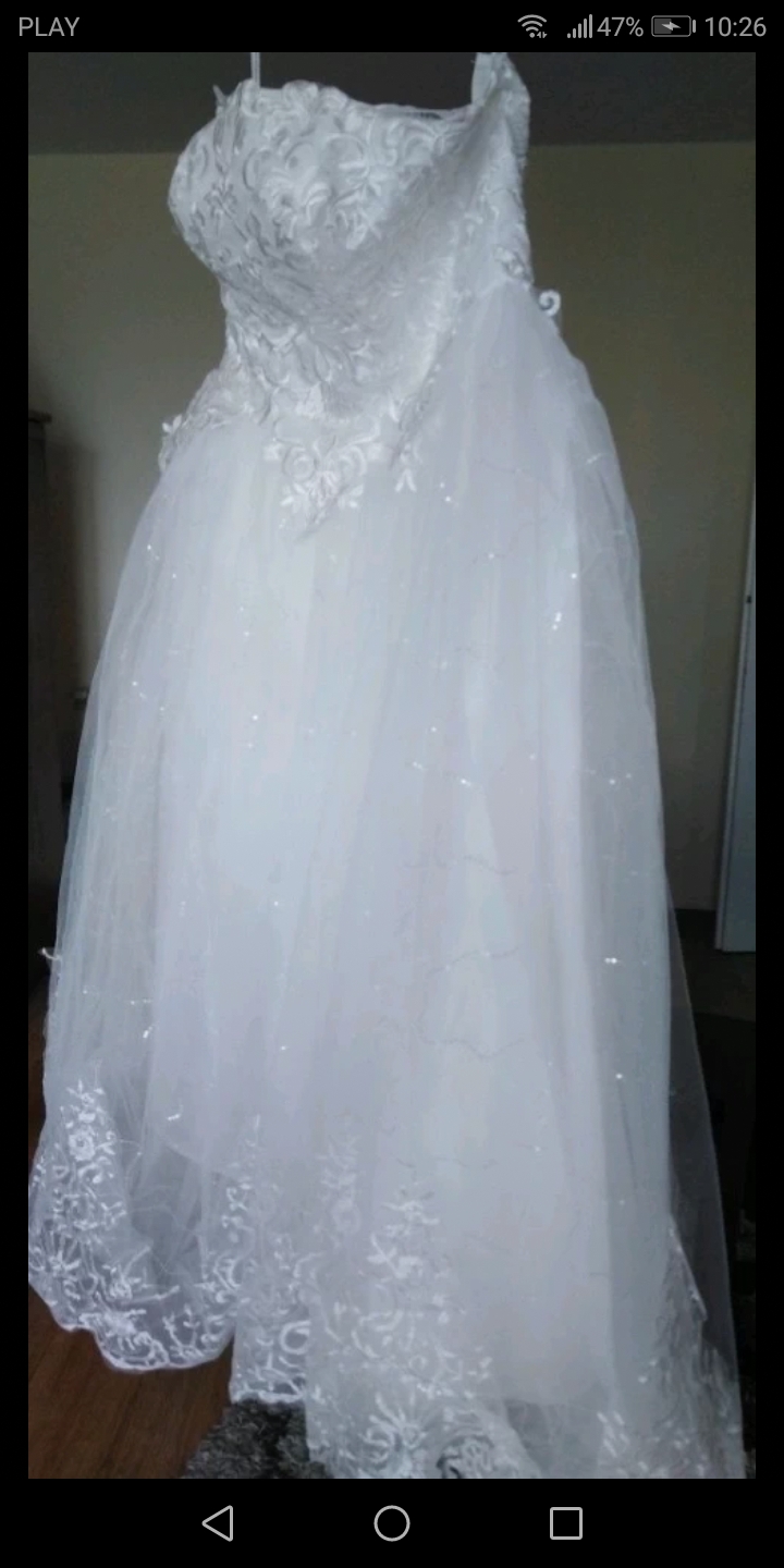 Sprzedam suknię ślubną. Stan idealny. Rozmiar 42, z możliwością regulacji. Wzrost 165 cm + obcas. Suknia na większy biust. Możliwość negocjacji ceny, chce się pozbyć sukni.