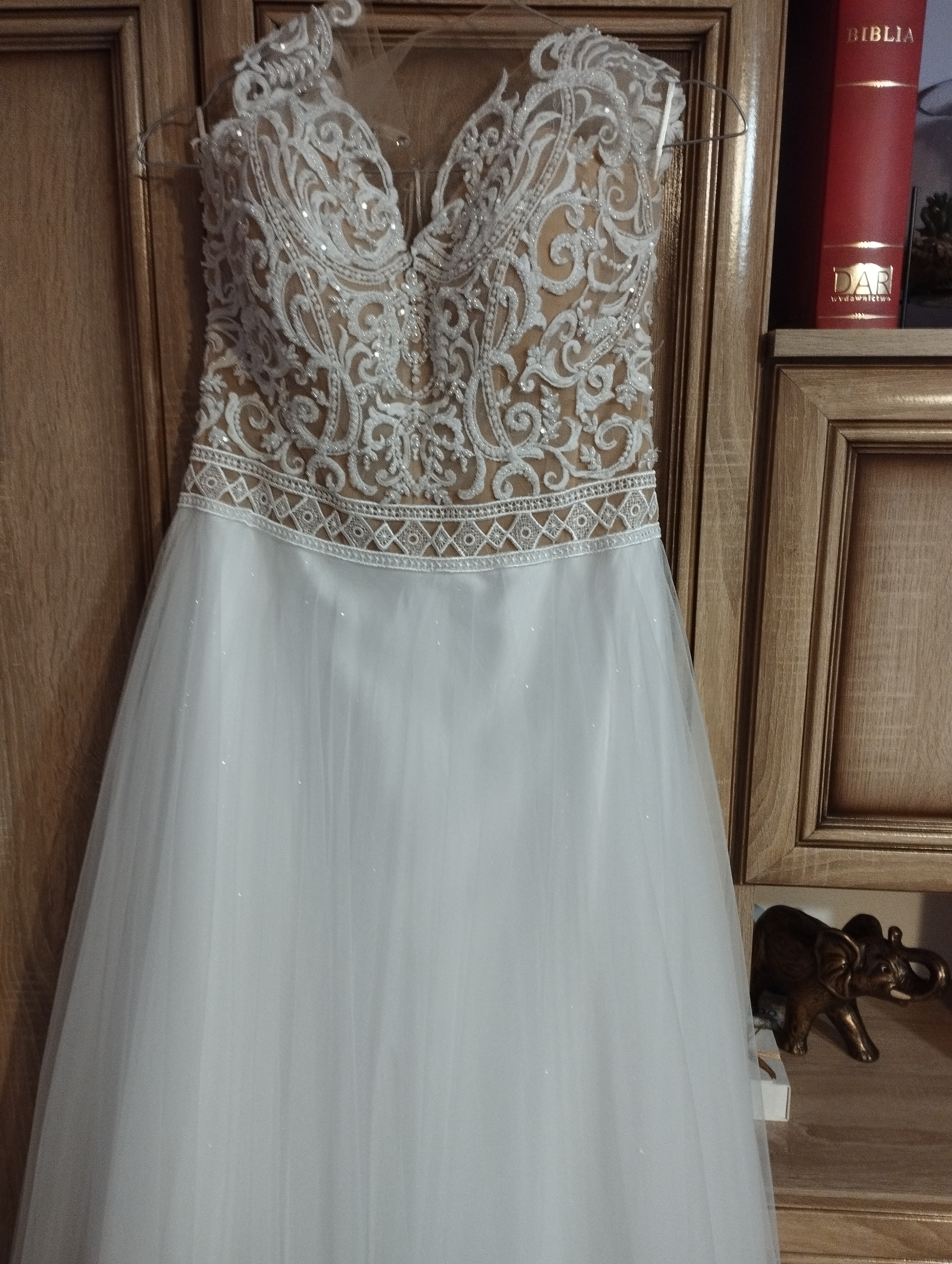 Mam do sprzedania suknię ślubną z welonem obszywany koralikami, rozmiar 36