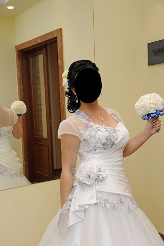 Suknia nie jest wyprana, ale jedna wizyta w pralni w zupełności jej wystarczy. Nie jest niczym zaplamiona ani podarta.