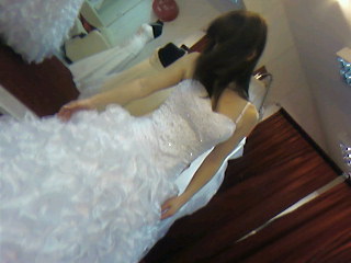 pieknie zdobiony przód kamyczkami i cały dół sukni)z tyłu sznurowania
