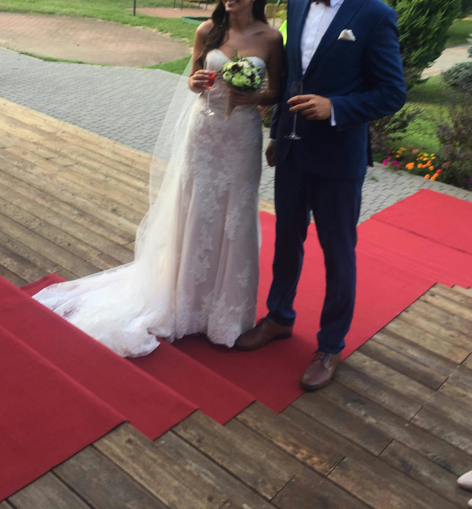 Mam do sprzedania dopasowaną ale jednocześnie wygodną suknię. Pięknie się prezentuje podpinany tren. Oczywiście założona jeden raz i zakupiona w tym roku w salonie La. Lila w Olsztynie. Zapraszam do przymiarki i zakupu.