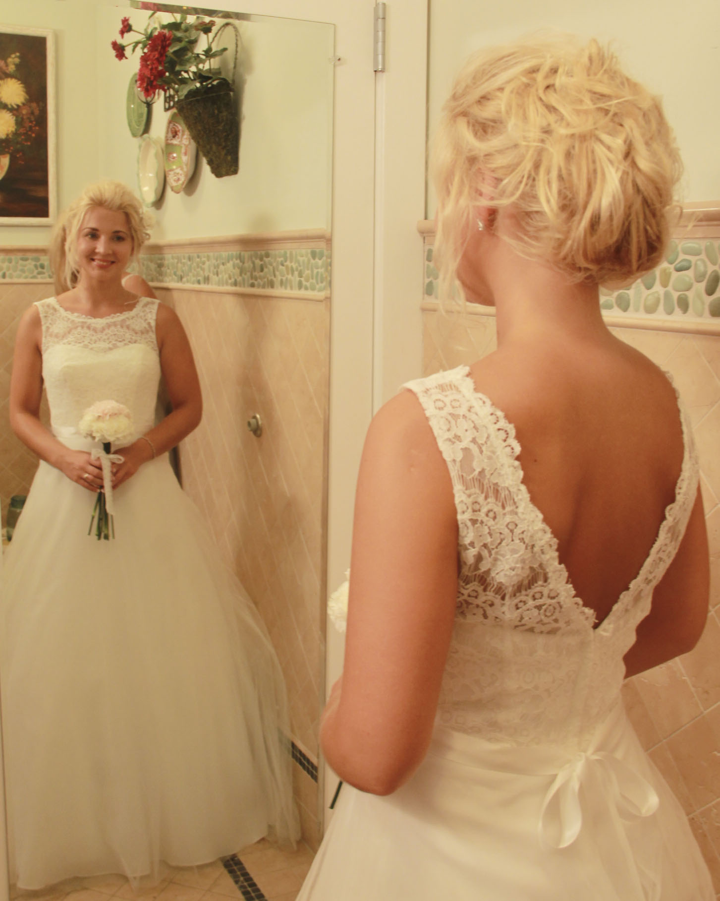 Suknię kupiłam w Stanach w salonie David Bridal. Z przodu ma koronkę, z tyłu wycięte plecy. Piękknie się układa i jest bardzo wygodna - można w niej przetańczyć całą noc ;) Można się kontaktować w sprawie ewentualnej przymiarki.