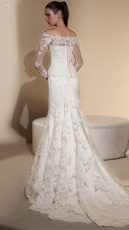 Suknia posiada długi tren z możliwością podpięcia . Jest bardzo wygodna - idealnie dopasowuje się do ciała i podkreśla figurę.