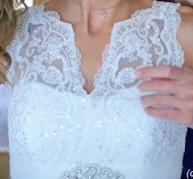 Przepiękna koronkowa suknia ślubna.