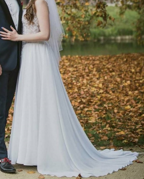 Zjawiskowa suknia ślubna (suknia + tren + welon)
