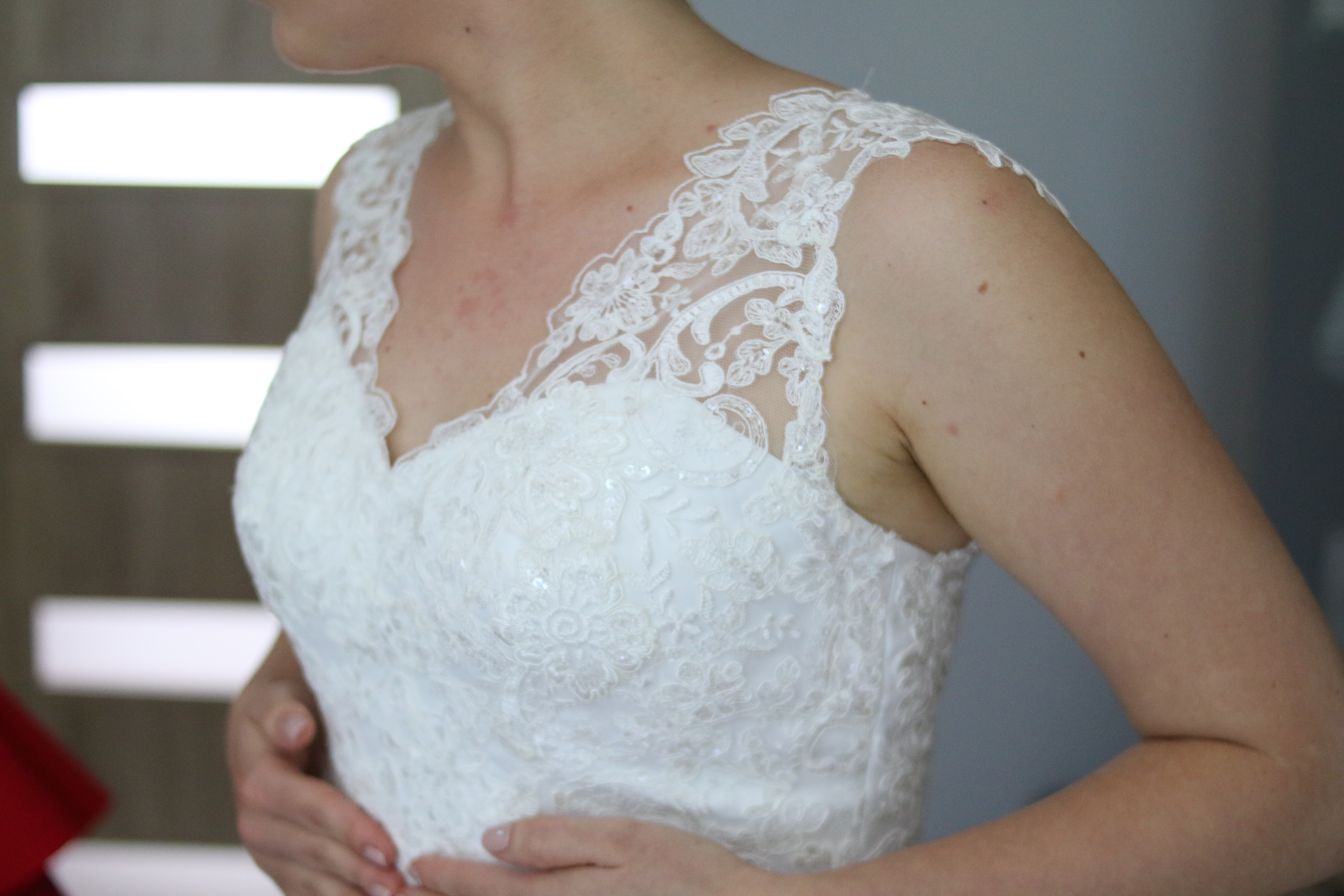 Mam do sprzedania suknię ślubną w kolorze ecru szytą na miarę. Do sukni zapakowanej w pokrowiec dołączam halkę, welon oraz szal. Była ubrana tylko raz 2.06. tego roku. Suknia jest bardzo wygodna, lekka i pięknie faluje w tańcu. W sukience zostały wszyte poduszki na biust tak więc nie ma konieczności zakładania nic więcej, choć ja zakładałam bieliznę ślubną. Suknia nie jest uszkodzona, jest wyczyszczona. Rozmiar sukni 38, wzrost 161 + 8 cm obcas, bez założenia halki suknia staje się dłuższa więc może ją ubrać osoba o kilka cm wyższa. Wymiary biust 94, pas 90, biodra 96. Osoby zainteresowane proszę o kontakt.