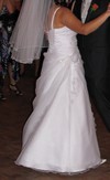 Sprzedam białą suknię ślubną szytą na wzór Elwira z salonu MsModa. Suknia jednoczęściowa z gorsetem, wiązana z tyłu dzięki czemu dopasowuję się do figury. Opleciona jest organtyną co daje niepowtarzalny efekt, rozmiar 38-40 wzrost 168-170cm. Do sukni dodaję halkę z małym kołem, bolerko z organtyny, welon, poduszkę na obrączki szytą pod suknię (takie same hafty), mogę dodać również kamizelkę z krawatem dla Pana Młodego rozmiar 48. Polecam!!!