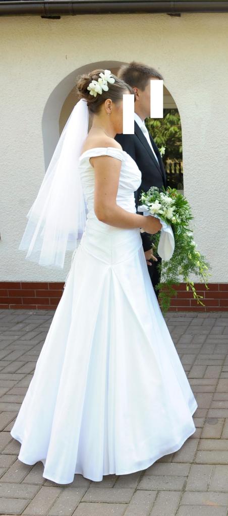 W komplecie w cenie sukni welon wykonany z tiulu (widoczny na zdjęciach).