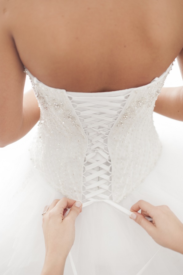 Gorset jest wiązany co pozwoli dopasować idealnie sukienkę do ciała oraz piersi