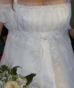 używana suknia ślubna, ręcznie doszywane koronki, usztywniona w obrębie biustu