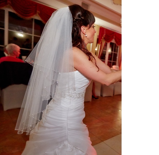 Kolor sukni-biały, rozmiar około 36, na wzrost 160cm +12cm obcas.Suknia posiada gorset, więc bez problemu można ją dopasować do sylwetki oraz tren, który można podpiąć za pomocą 4 guziczków. Do sukni dołączam halkę.