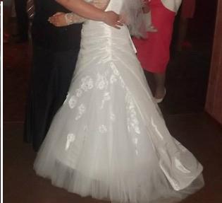 Sprzedam suknie ślubną z salonu Elizabeth używana tylko raz. rozmiar 40-42 na 170 cm.Suknia posiada mały tren z tyłu i wiązanie na plecach.Możliwość przymiarki.Do sukni dodaje halke z regulowanym kołem.Suknia jest wyprana w pralni chemicznej i jest w bardzo dobrym stanie.