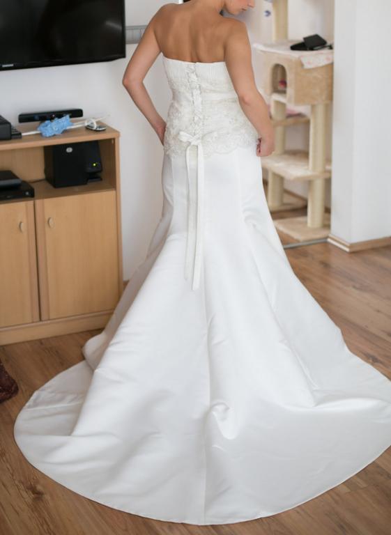 Witam. Sprzedaję swoją suknię ślubną i z miłą chęcią sprzedam ją komuś, kto będzie ją dobrze traktował. Suknia jest używana na ślubie i plenerze, jednak nie nosi żadnych widocznych uszkodzeń, ani zabrudzeń. Została dokładnie wyprana i odprasowana.