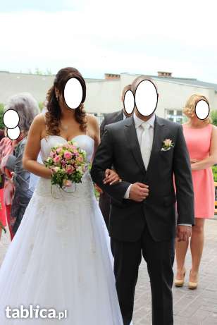 Mam do sprzedania suknię ślubną Afrodyta , model Malachite, kolekcja 2012.Rozmiar sukni 38/40 , długość 175 cm. Fason sukni to litera A, dekolt w kształcie serca.Suknia jest koloru białego zdobiona przy gorsecie koronką oraz kamieniami , które schodzą w dół sukni (do gorsetu zostały doszyte ramiączka , które bez problemu można zdjąć). Sukienka jest bardzo lekka i wygodna.Zapraszam do przymiarki.