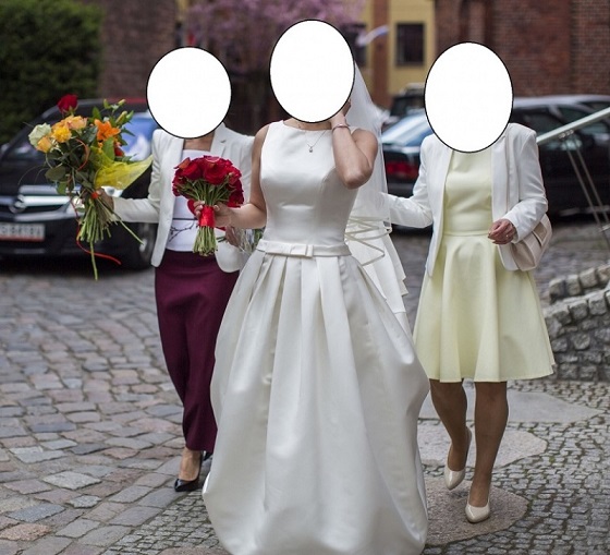 Przepiękna, elegancja suknia hiszpańskiej firmy Avenue Diagonal GENET z kolekcji 2015 r. w kolorze śmietankowym (ivory),dopasowana do moich wymiarów: 92/69/95,moja wysokość 164cm + 7 cm szpilki, bez problemu możliwa przeróbka. Niewielki, podpinany,uroczy tren ok.0,5 m oraz hit sezonu - kieszenie! Zakupiona w poznańskim salonie sukien ślubnych za prawie dwa razy wyższą cenę, dołączam rachunek. Bez dodatkowych kosztów 2 halki na kole, jedna np.do nauki tańca oraz kokarda do włosów na grzebyku zrobiona na zamówienie do kompletu, identyczna jak ta w pasie sukni. Suknia po czyszczeniu chemicznym,stan idealny. Ponadczasowa i klasyczna, robi wielkie wrażenie,zapewniam! Wykonana z bawełny jedwabnej,nie męczy zatem ciężarem,jest lekka i wygodna. Polecam serdecznie i zapraszam na przymiarkę. Po wcześniejszym uzgodnieniu - w Poznaniu, od ręki - w Szczecinie. Proszę o kontakt telefoniczny.