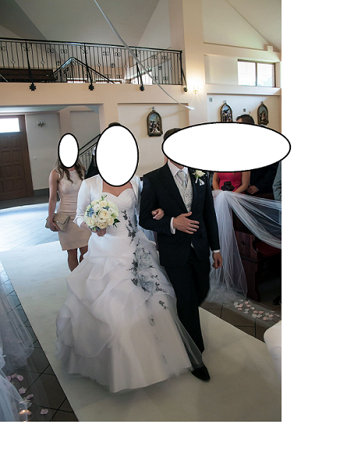sprzedam niepowtarzalną suknię z błękitnymi różami i ciemną aplikacją. Z tyłu wiązana błękitną wstążką. Na dole z tyłu jest również błękitna róża. Rozmiar S/M. Wzrost 160/170 cm. Stan bardzo dobry.