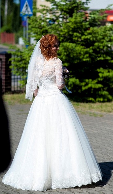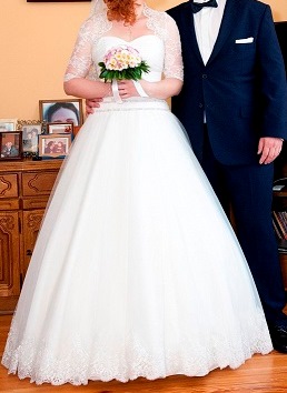 Suknię szyła moja teściowa, która jest profesjonalną krawcową, zatem w cenie sukni wszelkie poprawki są wliczone. Jeżeli trzeba będzie poszerzyć, zwężyć, albo skrócić suknię, nie ma problemu. Można również ozdobić suknie dodatkową koronka bądź innymi dodatkami. Wszystko do dogadania.