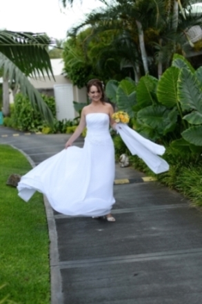 Suknia jest w rozmiarze 36 na wzrost 168cm + 8cm obcas. W razie potrzeby istnieje możliwość skrócenia bez utraty fasonu. Suknia ma wiązanie na plecach, dzięki czemu nie ma problemu z dopasowaniem jej do sylwetki. Dla przykladu, ja nosze rozmiar 38, suknia jest rozmiaru 36 i leżała doskonale. Posiada piękne zdobienia uwidocznione na zdjęciach. Jest lekka i zwiewna, z trenem, który łatwo mozna podpiąć. Do sukni dokupiłam zwiewny szal ze względu na charakter ślubu, ślub na plaży. Szal mogę dołączyc gratis do sukni na życzenie kupującego. Zapraszam do obejrzenia sukni i przymiarki, zdjęcia nie pokazują w pełni jej uroku.