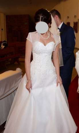 mam do sprzedania suknię ślubną szytą na miarę (wzrost 162 cm + obcas 8 cm) w Salonie Agnes w Świdwinie.