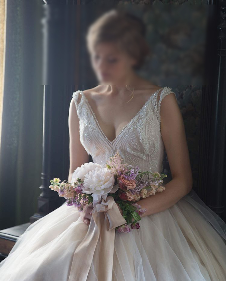 Ręcznie zdobiona setkami migocących perełek i koralików (wygląda to bardzo delikatnie i subtelnie!)