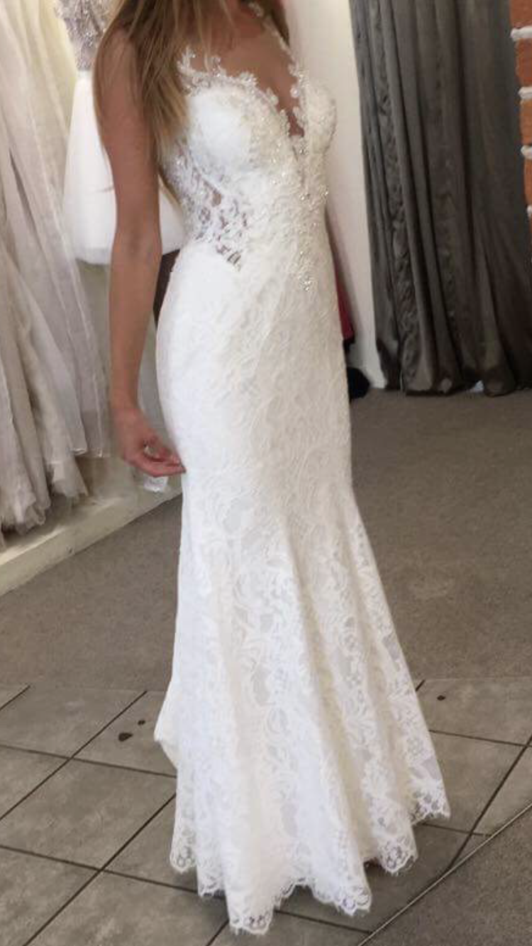 Suknia ślubna z trenem koloru Ivory. Do sukni dołączę długi welon mgiełkę