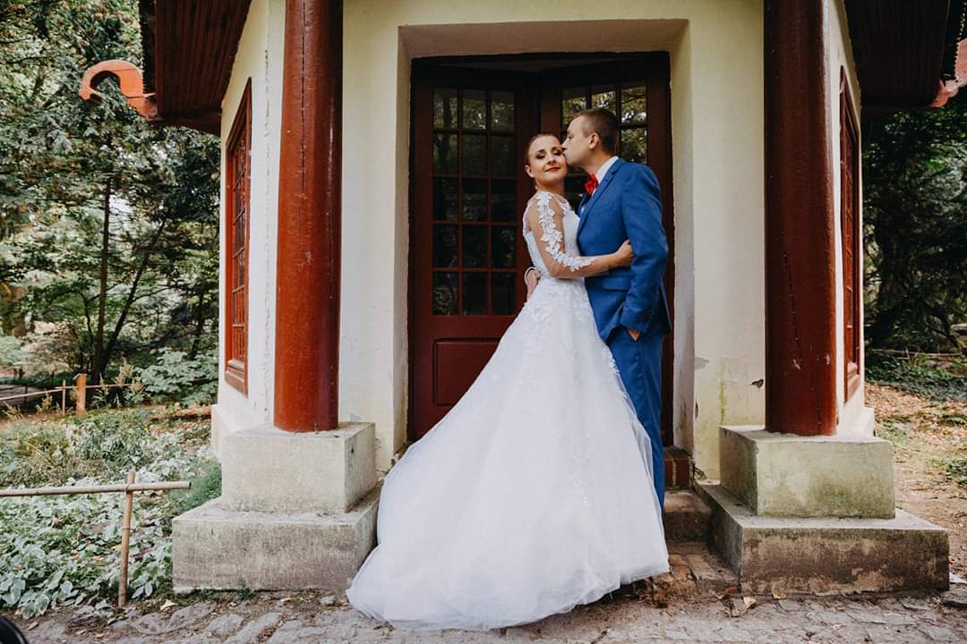 Posiadam również bolerko, które wkłada się pod gorset i wtedy suknia ma pięknie zdobione rękawy I suknia zupełnie inaczej wygląda (na oczepinach wyciągnęłam bolerko i goście byli przekonani, że przebralam suknię;p). Suknia ma ten, który można podpiąć na guziczek.