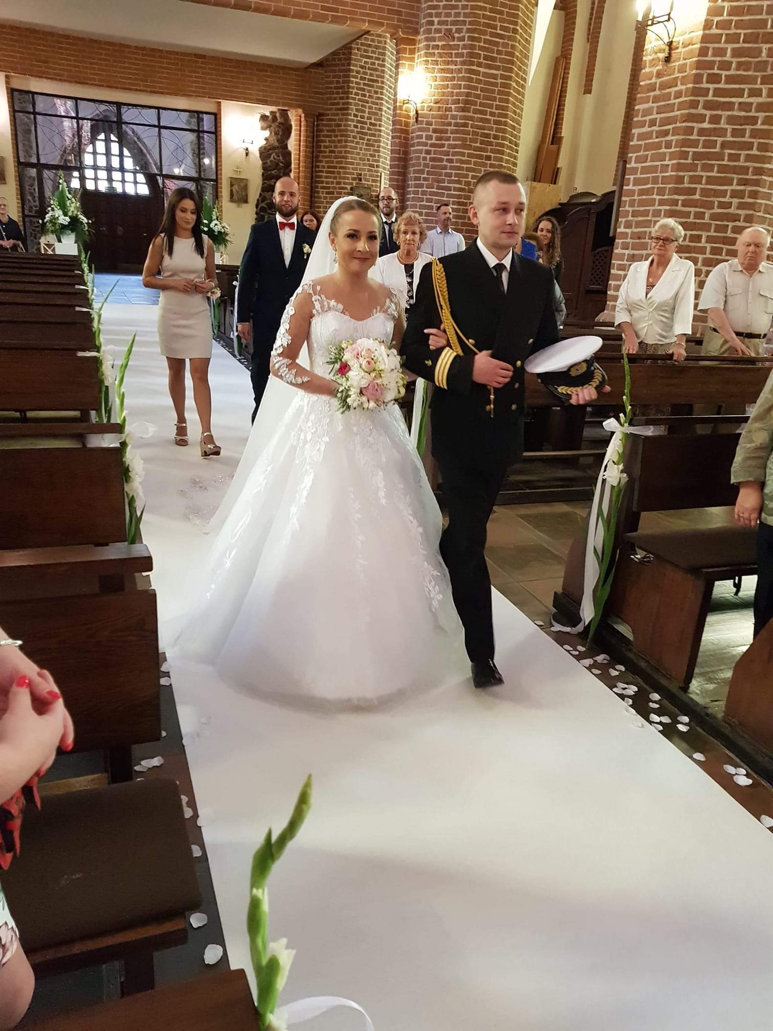 Wzrost 161+5cm obcas. W cenie dorzucę piękny 3 metrowy welon kupiony normalnie za 300 zł oraz krótki na przebranie na salę.