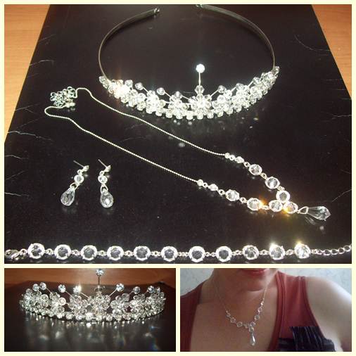 Oferuję na sprzedaż bardzo ładny i efektowny komplet biżuterii ślubnej czyli naszyjnik, kolczyki, bransoletka, diadem. Wszystko wykonane z kryształków pięknie odbijających światło. Dla zainteresowanych chętnie podam wymiary biżuterii. Ja byłam bardzo zadowolona i słyszałam same komplementy. Możliwa wysyłka pocztą za dopłatą za przesyłkę ok. 7 zł za list polecony.