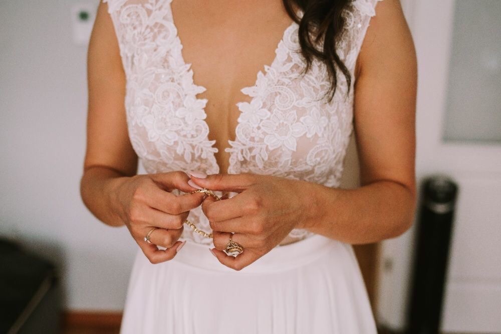 Sukienka ślubna Milla Nova kupiona w salonie Madonna szyta z połączenia dwóch modeli sukien.