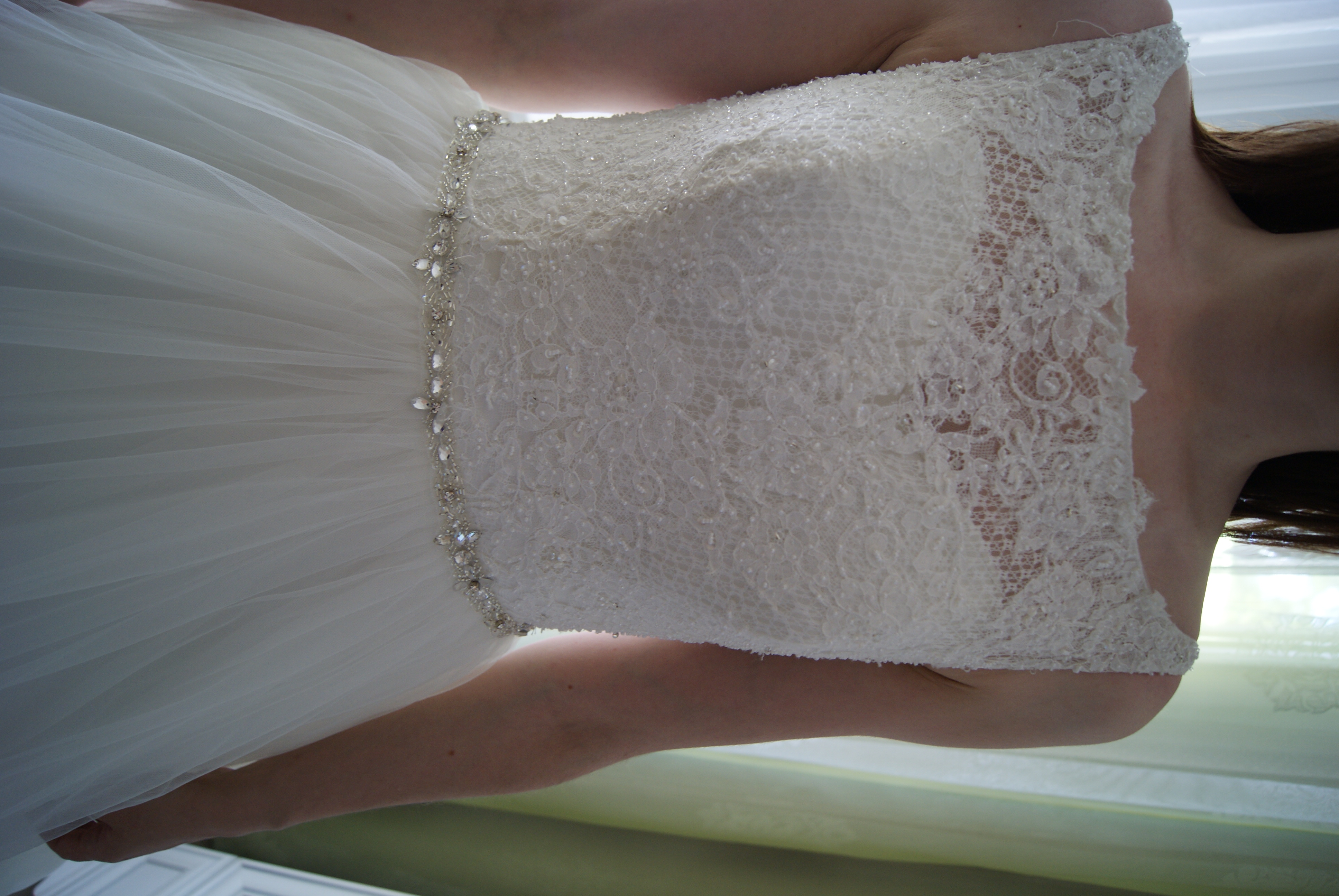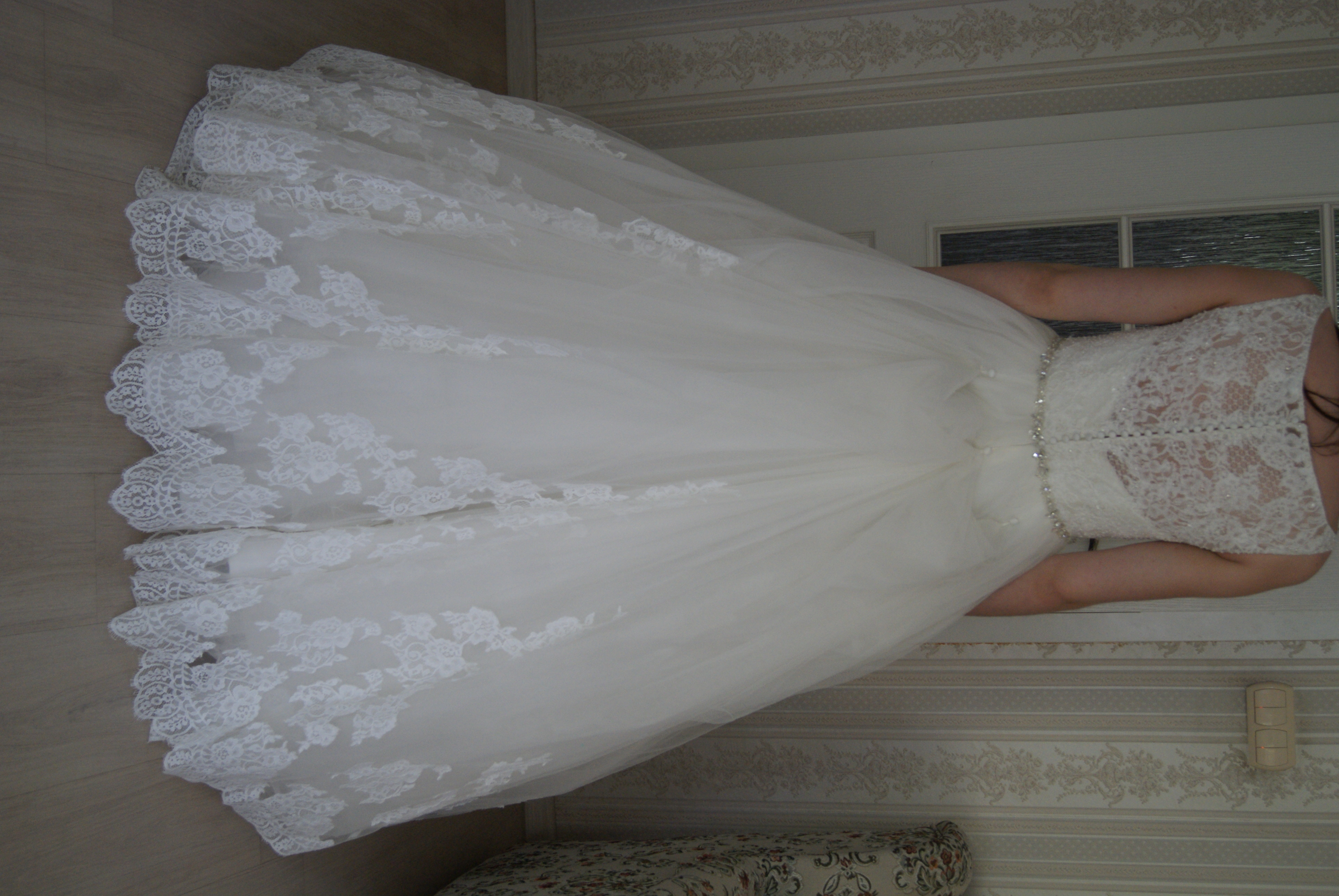 Suknia kosztowała 4000 zł, jest w stanie dobrym, była tylko mierzona, nie była założona na ślub ani wesele. Trzeba by ją odświeżyć i wyprasować, stąd też tak niska cena.