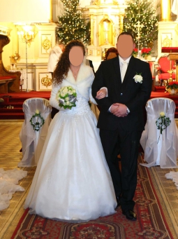 Przyszłą Pannę młodą zapraszam na przymiarkę w Łukowie (woj. lubelskie). Sukienka jest bardzo wygodna, lekka, ładnie podkreśla talię i pięknie układa się w tańcu.