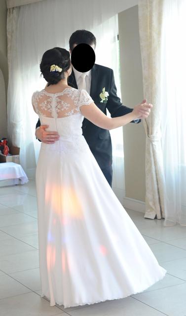 Mam do sprzedania prześliczną suknię ślubną, zaprojektowaną i szytą na zamówienie w maju 2014 roku. Jest więc ona niepowtarzalna i jedyna w swoim rodzaju. Suknia założona była tylko raz, w dniu ślubu – nie było sesji zdjęciowej w plenerze. Została profesjonalnie wyczyszczona. Suknia jest lekka i wygodna, pięknie układa się w tańcu.
