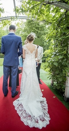 Przepiękna, zgrabna i delikatna suknia ślubna szyta na miarę. Bardzo wygodna, specjalny guziczek do zawieszenia trenu. Suknia jest bardzo lekka, przetańczyłam w niej całą noc. Serdecznie polecam zwłaszcza niskim osobom, gdyż suknie rybki w sklepie są standardowo szyte na 172cm i po ucięciu dołu suknia traci krój. Ta była szyta specjalnie dla mnie, a ja mam 159cm wzrostu.