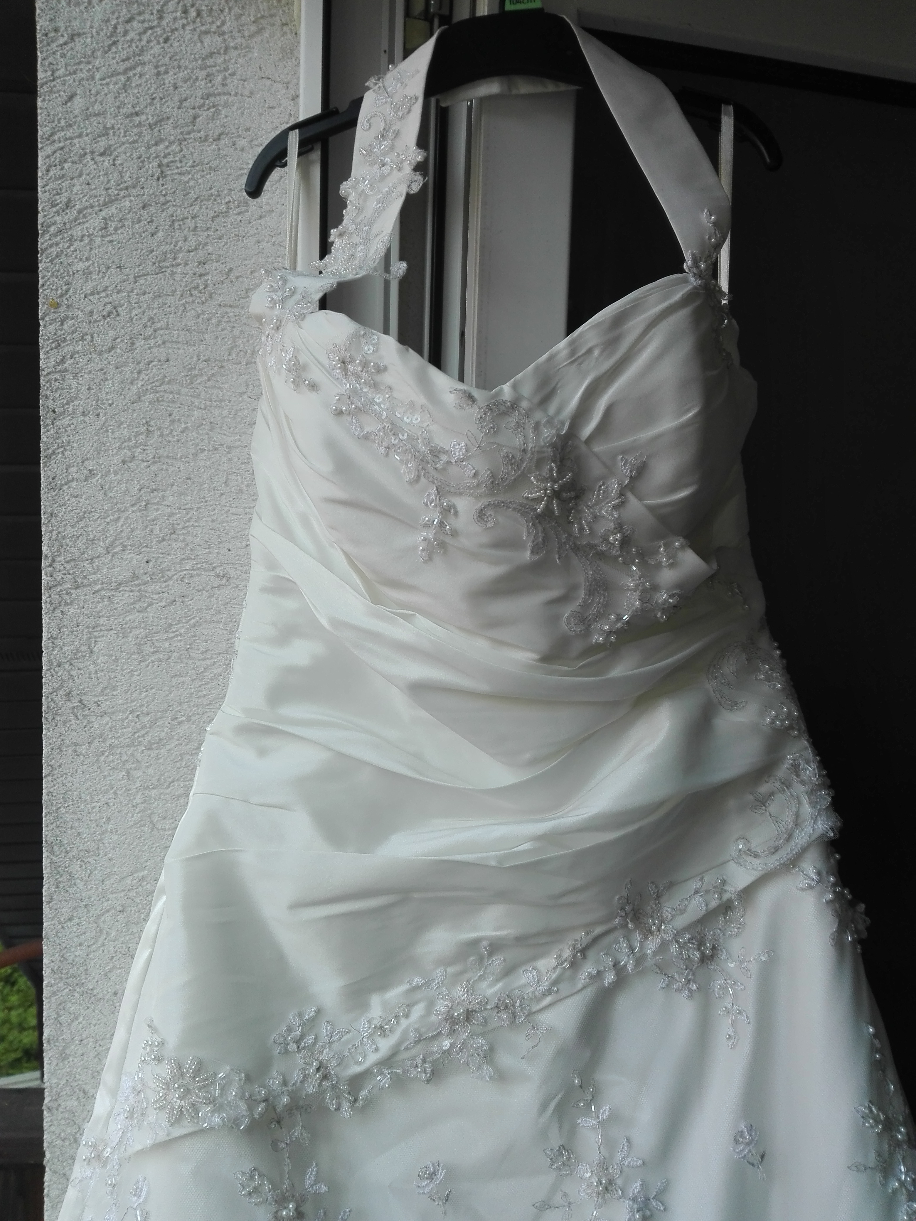 Suknia ślubna w stanie bardzo dobrym znanej marki,długosć całkowita 135cm,wymiar w biuście max to 43cm a min to37cm.Suknia w rzeczywistosci ładniejsza niz na zdjęciu polecam