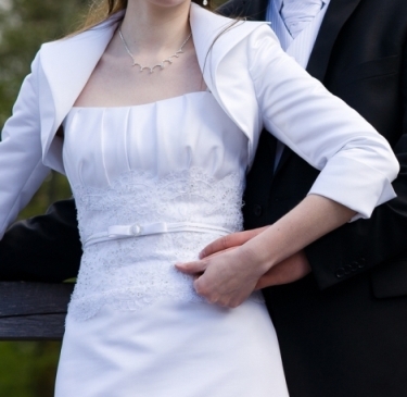 Posiadam również bolerko rozmiar 36 w kolorze białym oraz buty rozmiar 38 również białe z 7 cm obcasem.