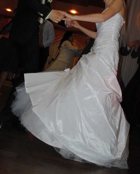 Suknia obecnie jest po czyszczeniu (nie ma żadnych uszkodzeń).