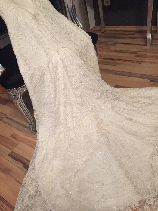 Sprzedam niesamowitą suknie ślubną ubraną tylko raz na uroczystość ślubu cywilnego - około 5h . Suknia kupiona w Salonie Sukien Ślubnych Madonna w Warszawie. Żadki model - Zotti . Przepiękna włoska koronka zdobiona koralikami lekko mieniącymi się. Suknia jest długa do ziemi z podpinanym trenem do możliwych poprawek wg uznania. Stan idealny. Cena nowej 4000 tys zł. Do zobaczenia w Szczecinie . Gorąco polecam !